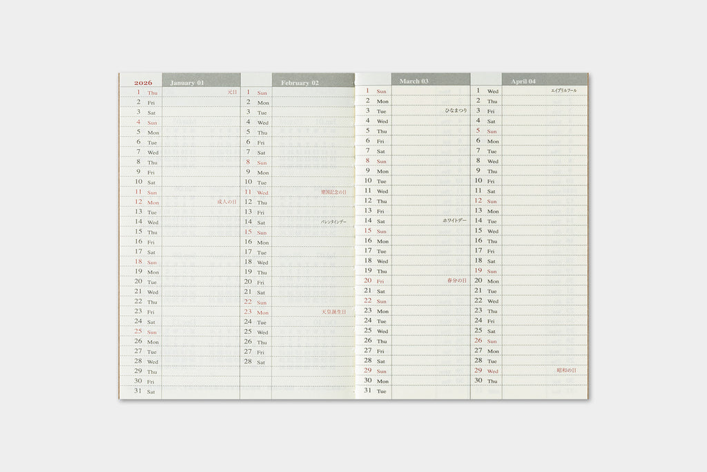 Traveler's Company Traveler's Notebook 2026 Weekly Passport Size