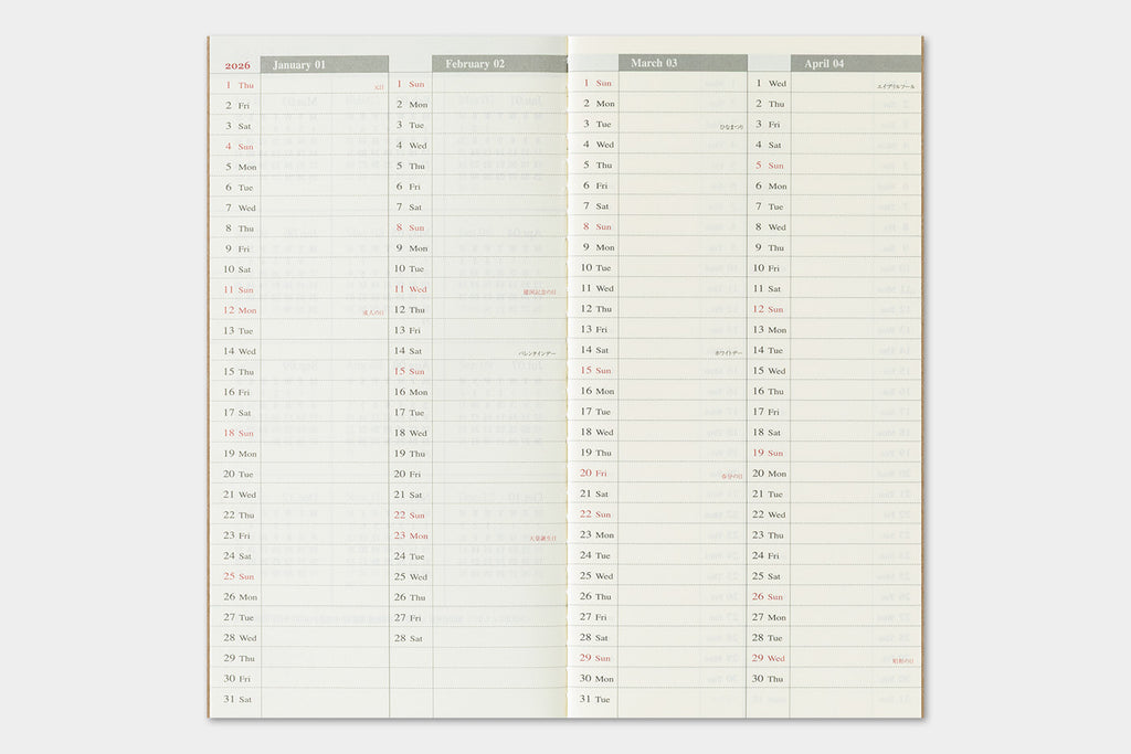 This is the 2026 Weekly Vertical Diary for TRAVELER'S Notebook. This diary is useful for keeping track of your schedule.