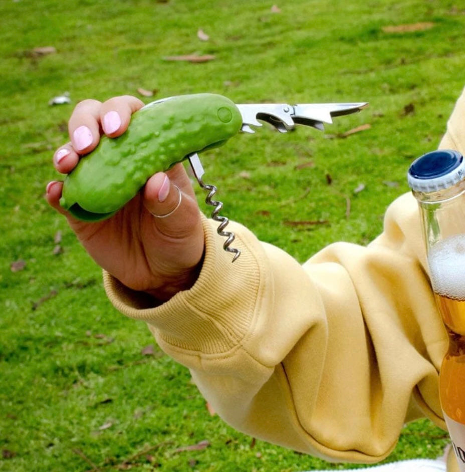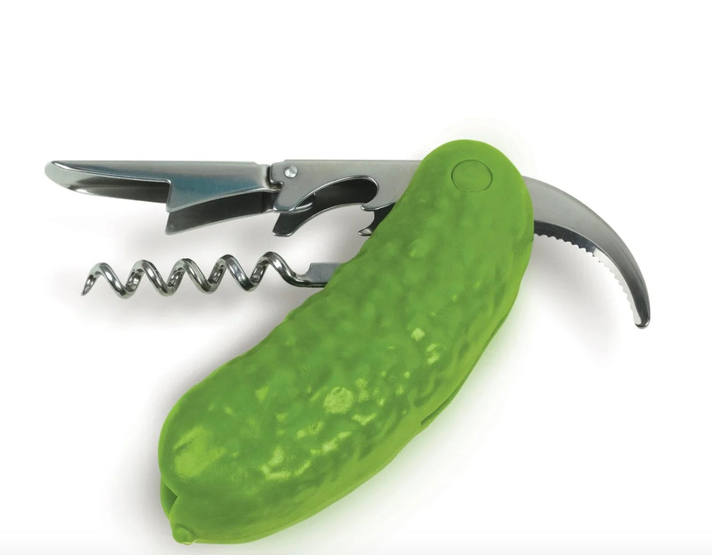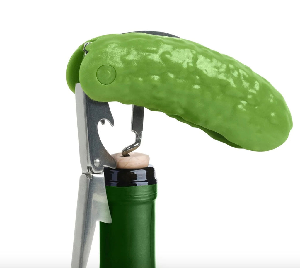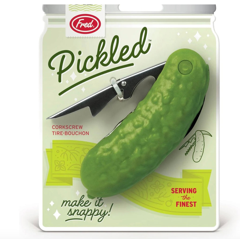 When it’s time to relish a dillightful bottle of wine, reach for Fred’s Pickled corkscrew and everything will be just brine. This quality, multi-functional bar tool includes a foil cutter and double-hinged lever corkscrew.